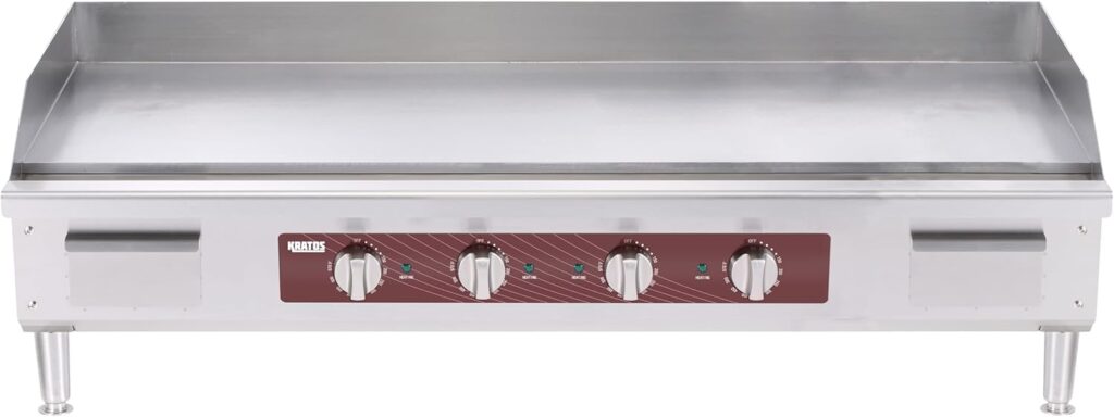 Bottom line: If you need a wide, powerhouse griddle that can handle high-volume cooking all day, every day, the Kratos 48″ is your new MVP.