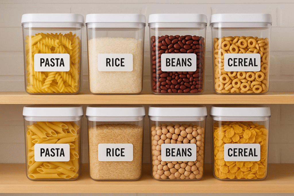 - Use: Dry goods—flour, sugar, pasta, snacks