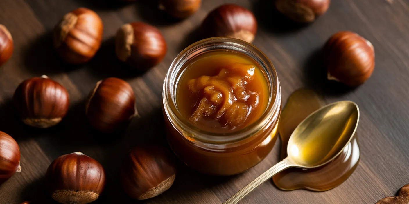 Ingredients: 1 cup sugar · 1 cup water · ¼ cup praline paste or ¼ cup ground roasted chestnuts · ½ tsp vanilla extract · ½ tsp almond extract