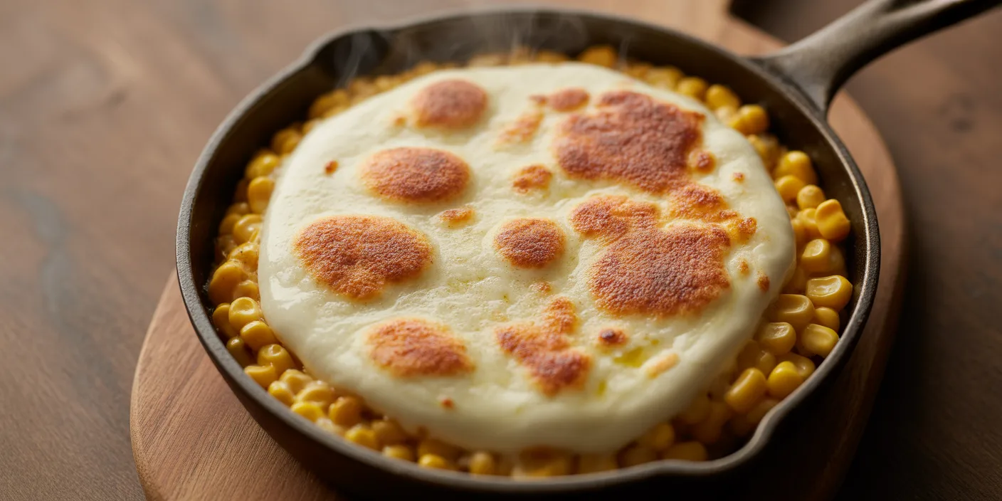 One of the most popular Korean café side dishes — sweet corn mixed with mayonnaise, butter, and sugar, topped with mozzarella and broiled until bubbly and golden. Dangerously addictive.
