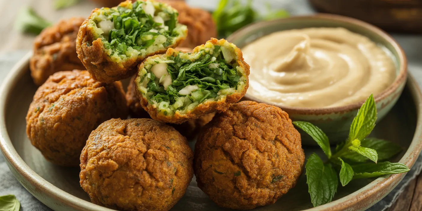 Falafel is a delicious, plant-based dish made from ground chickpeas, herbs, and spices. These crispy, golden-brown fritters are perfect as a main dish or appetizer, often served in pita bread with a drizzle of tahini sauce.