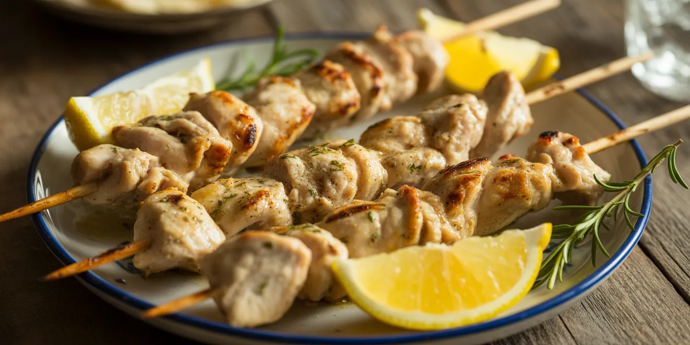 Chicken Souvlaki is a popular Greek dish made by marinating chicken in olive oil, lemon, garlic, and herbs, then grilling it to perfection. Serve it with a side of Greek salad or wrapped in pita bread for a complete meal.