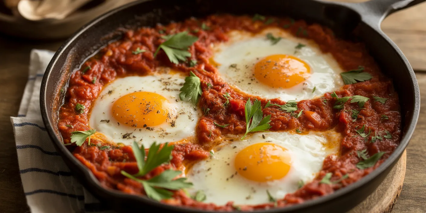 Shakshuka is a flavorful North African and Middle Eastern dish of poached eggs in a spicy tomato and pepper sauce. It’s perfect for brunch or a light dinner, served with crusty bread to soak up the sauce.