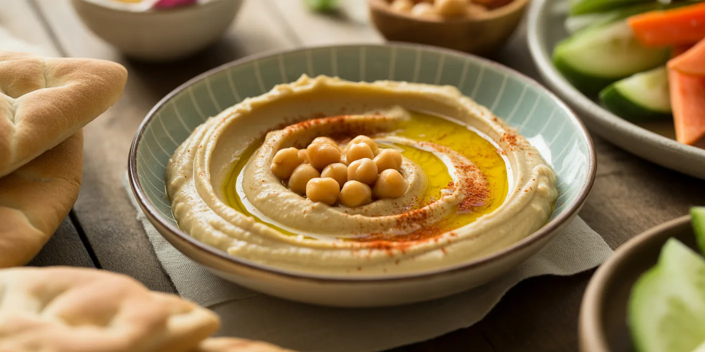 A Mediterranean classic, hummus is a creamy and flavorful dip made from chickpeas, tahini, garlic, and lemon. It’s perfect for snacking, as a spread for sandwiches, or as an appetizer served with pita bread or vegetables.